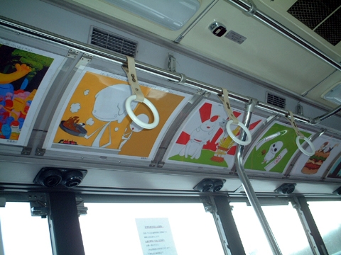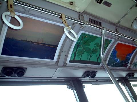 現在2台のバスの車内ではそれぞれのアーティストの作品を展示中。